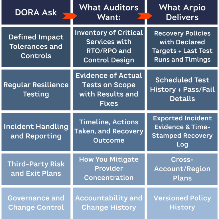 How Arpio Turns DORA Requirements Into Deliverables: